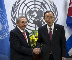 During the meeting, the secretary general of the UN highlighted the process towards normalization of relations between Cuba and the United States. He also noted the changes U.S. President Barack Obama has declared on policy towards Cuba, as an important step forward towards normalization of relations.